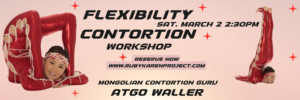 We are excited to present: OTGO WALLER Famous Mongolian Contortionist from Las Vegas WORKSHOP DATE AND TIME: SATURDAY MARCH 2, 2024 @ 2:30PM 1hr. 15 min. WHERE: AERIAL DANCE THEATER, 3001 REDHILL AVE. BLDG. 1 SUITE 107, COSTA MESA, CA 92626 RESERVE YOUR SPOT ABOUT OTGO WALLER (written by ELEN RAMÍREZ) Otgo Waller is a professional contortionist …